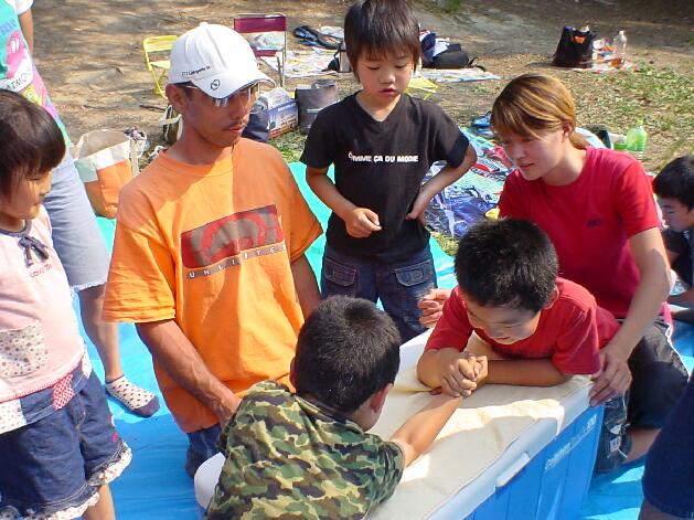 豊島北支部開設5周年記念「腕相撲大会」でチビッコたちを見守る