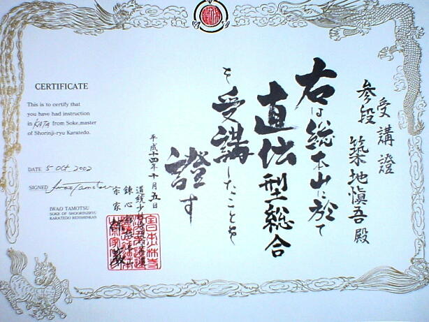 最も自信のある「型」だったので是非「宗家先生」に見て頂きたかったのです。直れの体勢に入