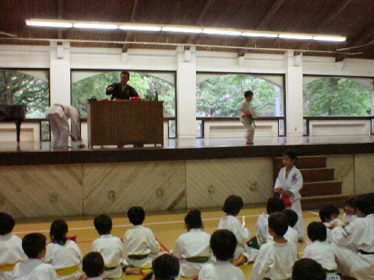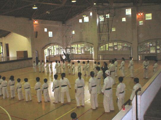 現在、みんなで「半月」(セーサン)の型を特訓中です。 |