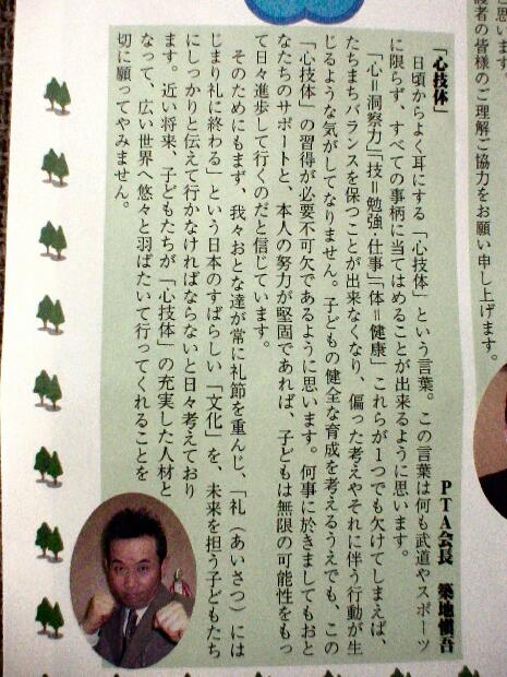 という訳で、学校内で配られる「広報誌」の一発目の挨拶では「心・技・体」に触れ、チョッと