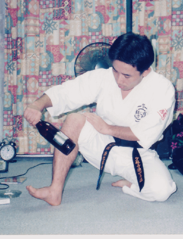 | 出口指導員を相手に「跳び後ろ廻し蹴り」する支部長! |