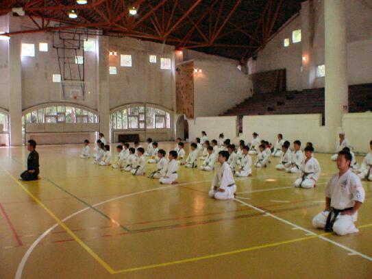 現在、みんなで「半月」(セーサン)の型を特訓中です。 |