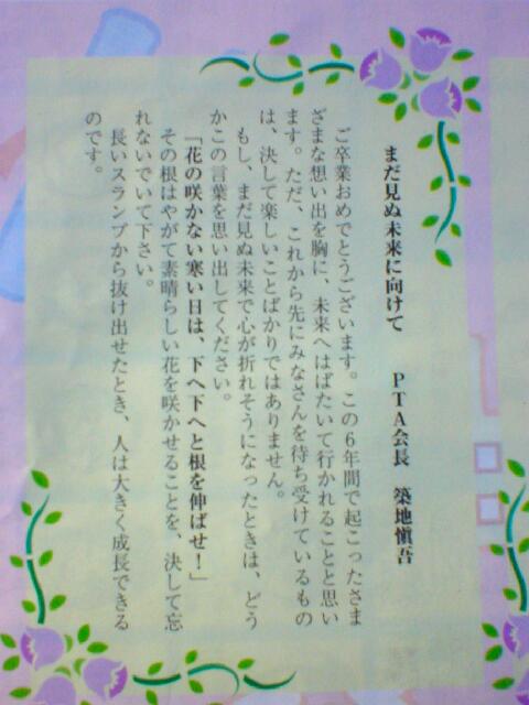 なにより「卒業式」では「じ〜ん」と来てしまい、PTA会長の簡単な挨拶では、思わず言葉がつ